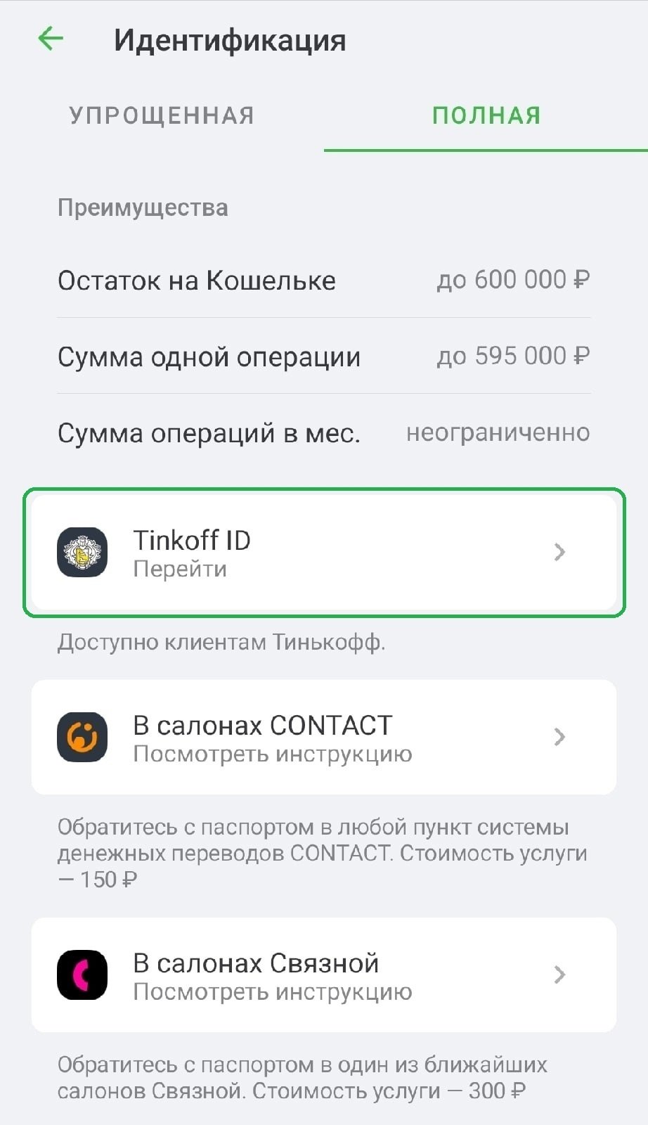Конечно, всегда есть вариант с упрощённой идентификацией через «Госуслуги» или анкеты в ЦУПИСе, но всё же она накладывает не самые приятные ограничения, вроде лимита на сумму месячных операций.