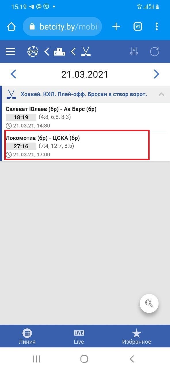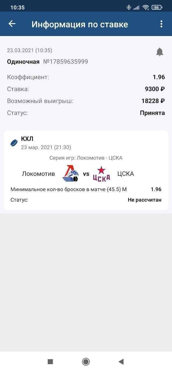 Ещё хоккейный пример — плей-офф КХЛ (куда серьёзнее?), статистика серии. В первой игре «Локомотив» и ЦСКА нанесли 43 броска на двоих, но перед второй дали ставку «Минимальное количество бросков в [любом] матче (45,5)» на больше или меньше… Если кто не понял, то ТМ уж зашёл. Выплатили и такое. Не видел жалоб…