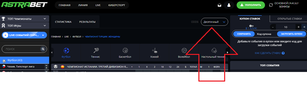 К примеру, мне непонятен мотив — зачем нужна акцентированная опция переключения формата коэффициентов. Если в «1хСтавке» её ещё нужно найти, то в случае Astrabet она на виду.