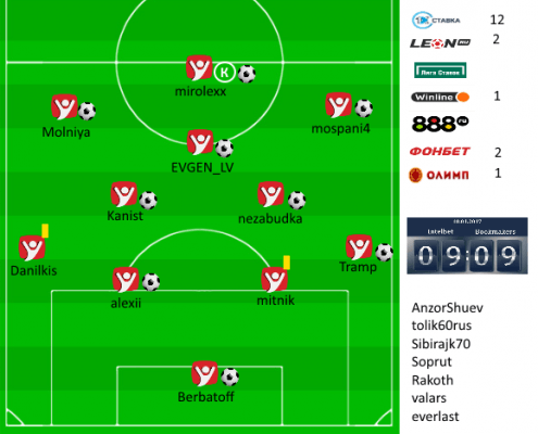 Я буду вести статистику(из интереса) , но хотел бы подчеркнуть, что победа по итогу дня все-таки будет командная... В конце дня естественно будет подведение итогов и стилизованное табло покажет с каким счетом закончился наш "товарищеский матч"... Можно остаться зрителем, а можно войти в сборную дня Интелбета и доказать что читатели сайта не напрасно его читают. Пока счет 0:0...