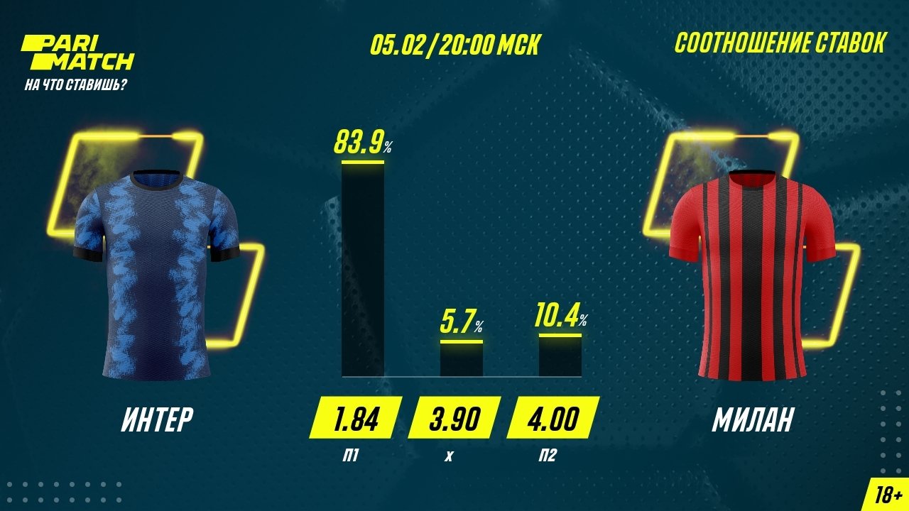 По данным БК «Париматч», игроки верят в «Милан» даже меньше букмекеров. Мало кто любит сюрпризы, особенно когда они касаются ставок.