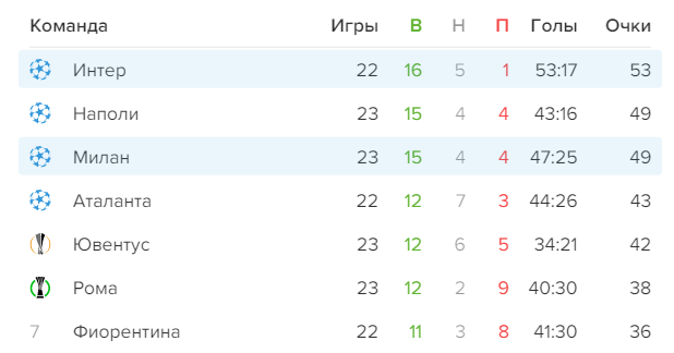 Две лучшие команды прошлого розыгрыша Серии А пока подтверждают свой статус фаворитов. Однако до конца чемпионата еще 15 туров и за это время многое может поменяться.