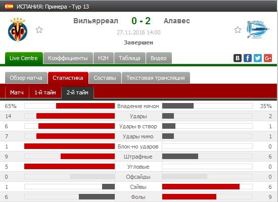 - утомленность хозяев и свежесть Алавеса, который отдыхал целую неделю после поражения от Эспаньол(0:1, 20 ноября).