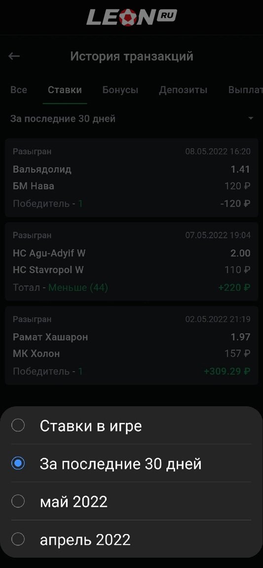 Ну а у «Леона» история хранится также два месяца, а отфильтровать данные можно только по месяцам.