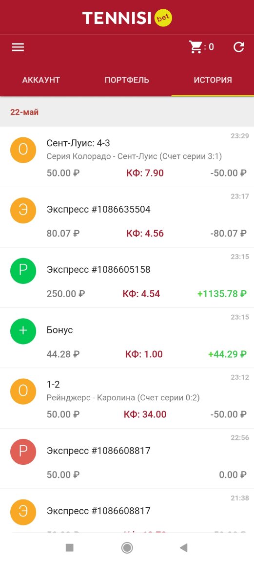 С Tennisi есть небольшой нюанс: в мобильном приложении клиент может отследить историю лишь за последнюю неделю, весь архив же доступен только через полную версию сайта.