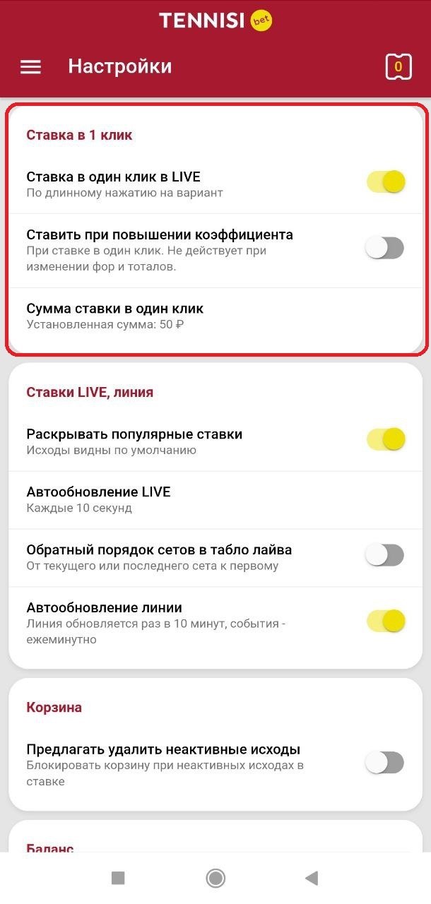 Стоп-стоп-стоп, есть же ставка в один клик в Live! Да, есть: врубаешь в настройках эту функцию, выставляешь сумму, долго удерживаешь любимый пальчик на лайв-коэффициенте — ставка принята.