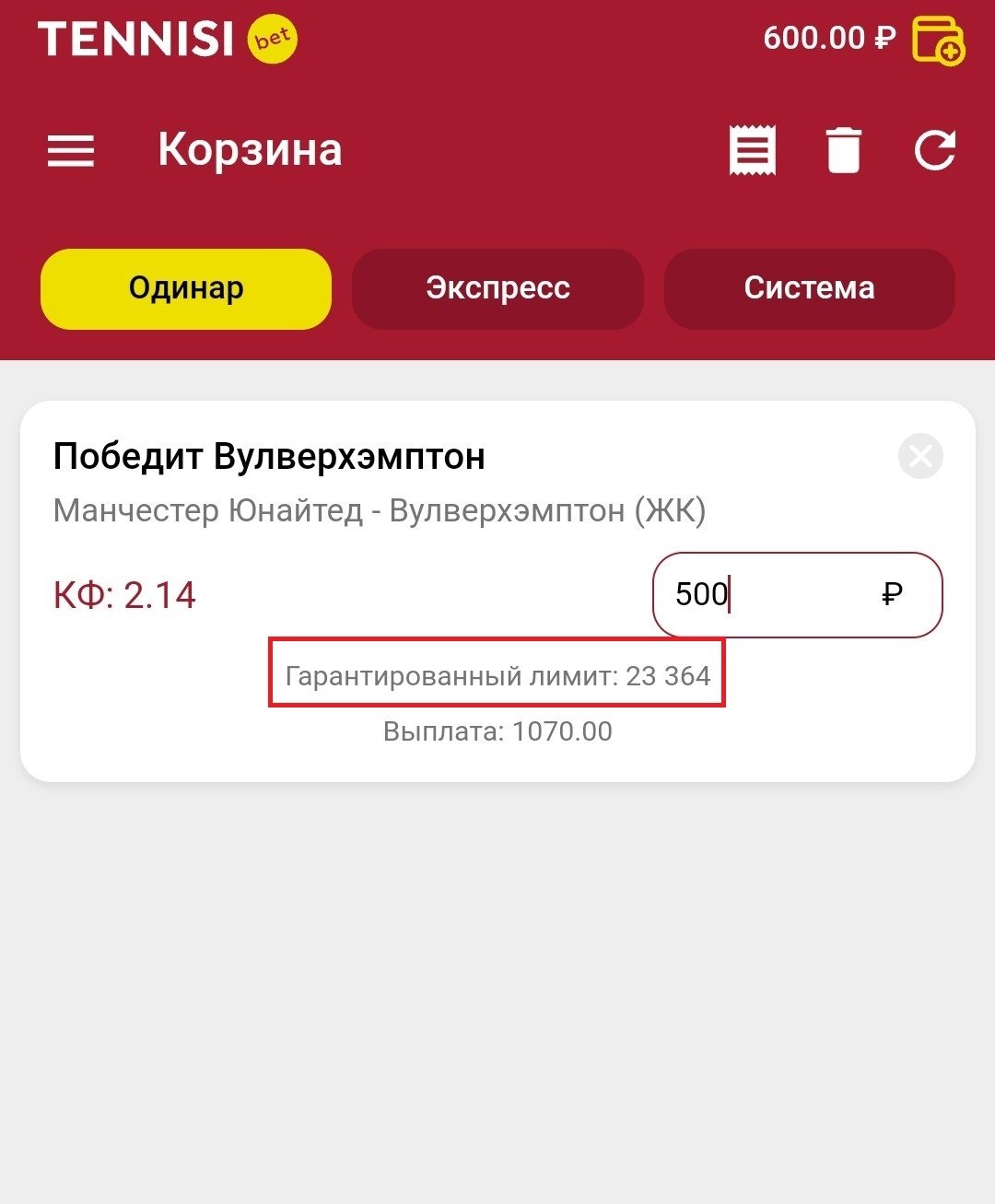Составив экспресс, нельзя поднять больше 3 миллионов — исходя из этого, система и установит лимит под кэф. Он получился 1000.00? Больше 3 тысяч рупий не поставить.