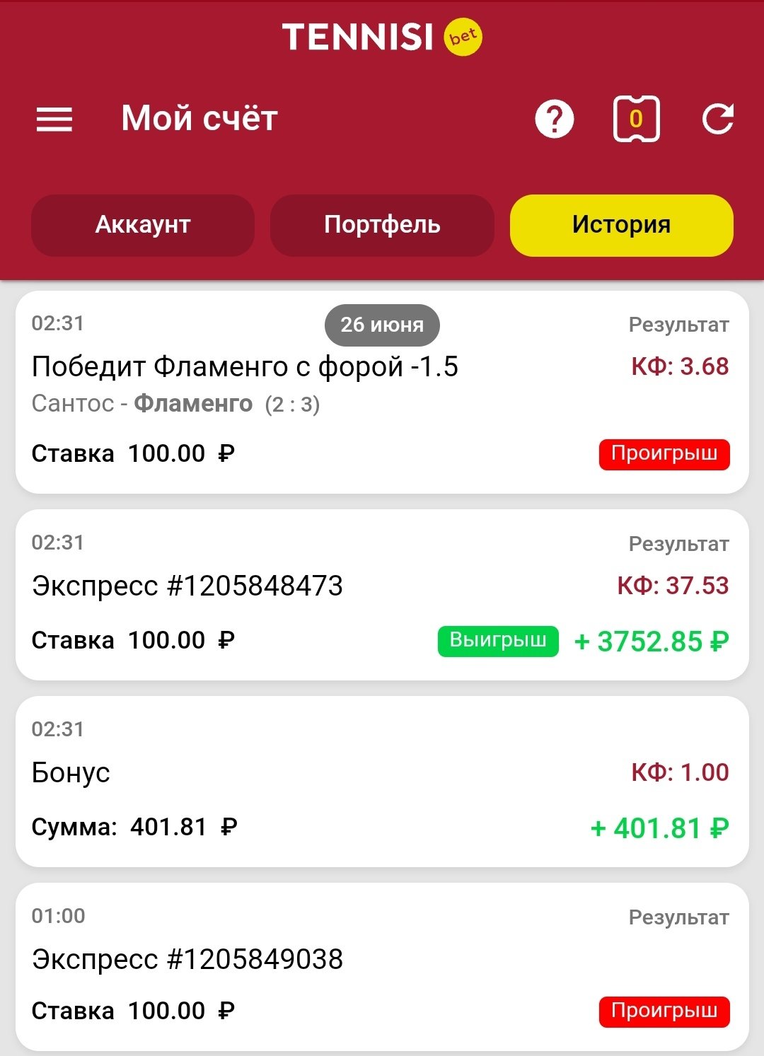Ну и одна из главных гордостей букмекера — бесконечный бонус. Если не вдаваться в размеры процентов и нюансы, то «Тенниси» прибавляет часть чистого выигрыша к каждой победной ставке. Вообще довольно прикольная штука, когда заряжаешь приличную сумму или доехал экспресс с годным коэффициентом. Думал, выиграл 3,5 тысячи своим «паровозом»? Ха, лови 4!