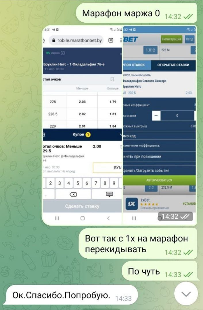 Далеко за примерами ходить не стоит: 10 марта этого года мне написал один из подписчиков с просьбой дать совет, как лучше перекинуть деньги из одной БК в другую. Я предложил сделать это через баскетбол и для примера открыл первый попавшийся матч НБА в линии — «Филадельфия» принимала «Бруклин». ТМ 229,5 можно было забрать за 2.00 в одной конторе, а ТБ 230 за 2.03 давали в другой. Итог игры: 129:100, то есть тотал ровно 229!