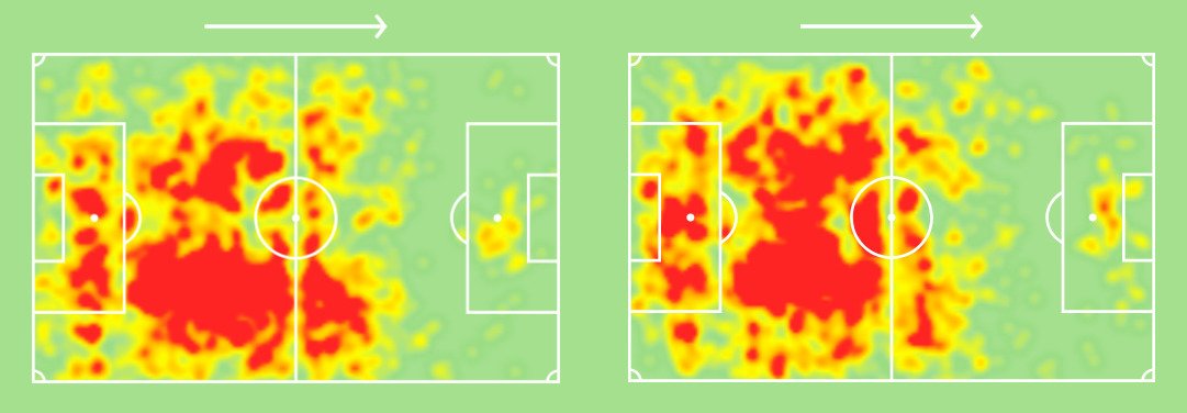 Прогресс защитника в покрытии поля виден невооружённым глазом. За последние два года он меньше стал уходить в слаломные проходы и выбрасываться высоко во время обороны. Это ещё раз подтверждает то, что благодаря экономии сил игрок стал больше работать на своей половине, полностью перекрывая оппонентам полуфланг атаки.