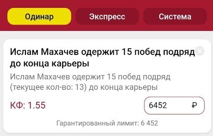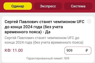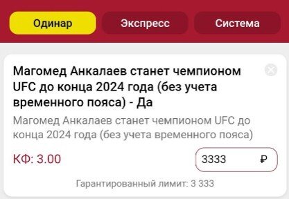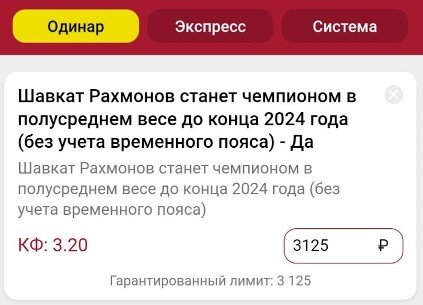 (Нет — 1.34). Перед тем как получить титульный шанс, Магомед должен выиграть лояльность Даны Уайта. Для этого нужно красивопобедить Джонни Уокера, а потом провести ещё пару поединков. Рядом есть Александр Ракич и Иржи Прохазка, и вряд ли россиянин обгонит их в списке претендентов. У этой ставки есть плюс в виде красивого лимита в 3333 рубля. Будь ещё кэф в районе 3.50, пари стало бы интересным.