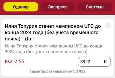 Ставка зайдёт уже в феврале, если Илия одолеет Волкановски. Пари является приблизительным аналогом ставки на победу Топурии в ближайшем поединке. Например, Winline даёт коэффициент на этот исход