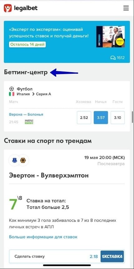 Как пользоваться Беттинг-центром Legalbet
