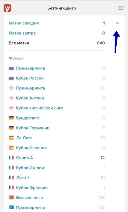 На мобилке список турниров разворачивается по стрелке в правом верхнем углу.