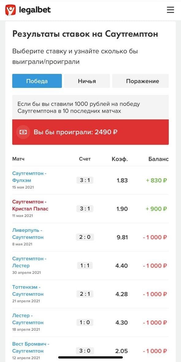 Наверное, не все знают, но на Legalbet есть отдельные страницы команд. Попасть туда можно, нажав на интересующий клуб.