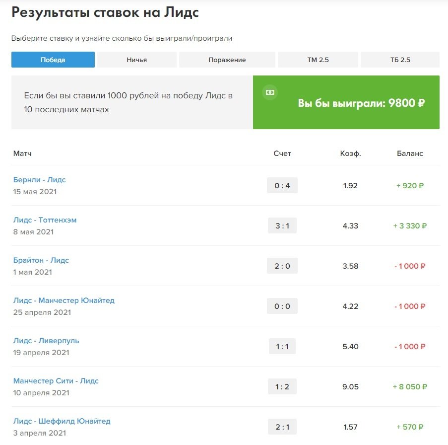 Там собраны все тренды, прогнозы и блоги про эту команду. Также можно посмотреть, какие ставки заходили в последних десяти матчах.