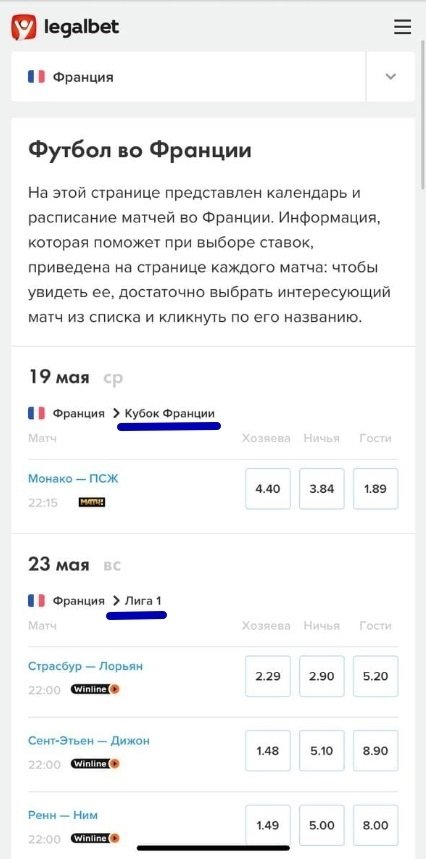 Например, на странице России представлены все российские турниры. Сейчас у нас их немного: мы ведём только РПЛ и КР, а раньше здесь бы ещё отображались ФНЛ и ПФЛ. Принцип, думаю, понятен.