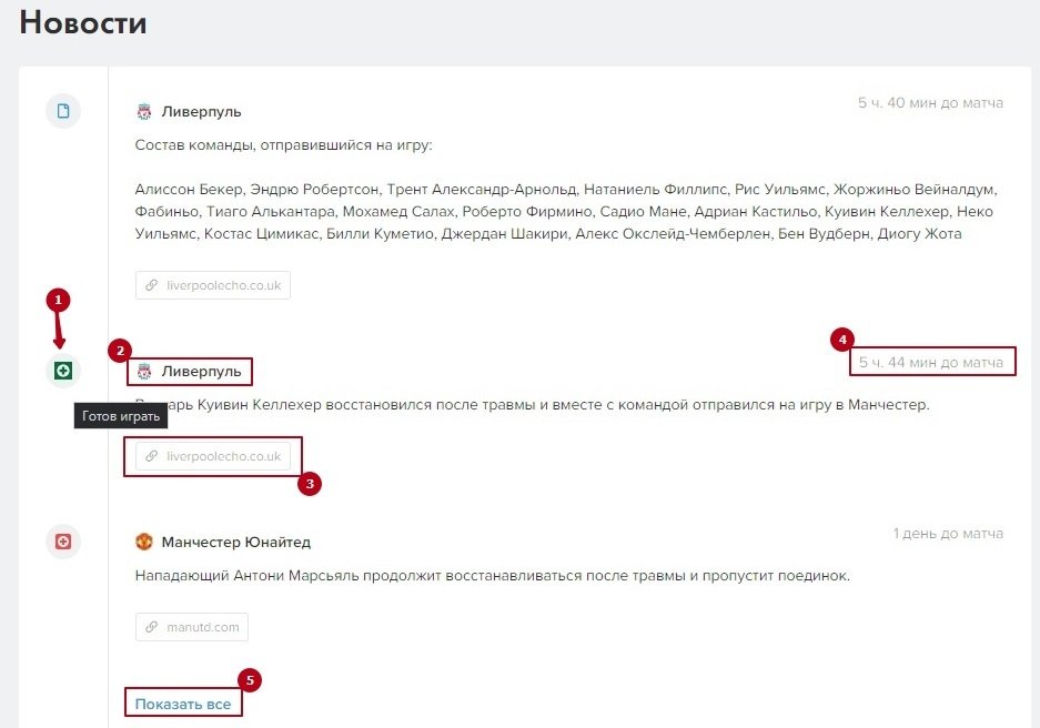 Не забывайте раскрывать новостную ленту (5), чтобы увидеть все новости перед игрой.