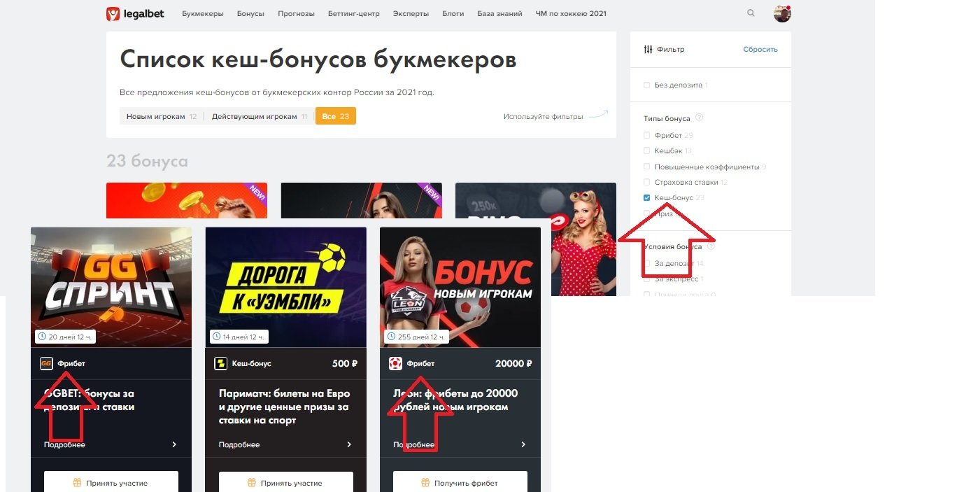 Пример 2. Контроль точности фильтра. Не могут Фрибет появляться в Кэш бонусах.