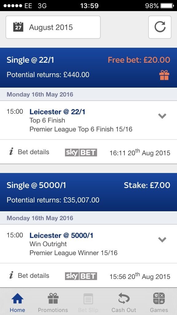 Да, порой практически невероятные события становятся реальностью: вспомнить хотя бы чемпионство «Лестера» в АПЛ в сезоне-2015/16 — букмекеры перед стартом чемпионата давали кэф 5001 (!) на победу «лис», то есть оценивали их шансы на победу примерно в 0,019%.