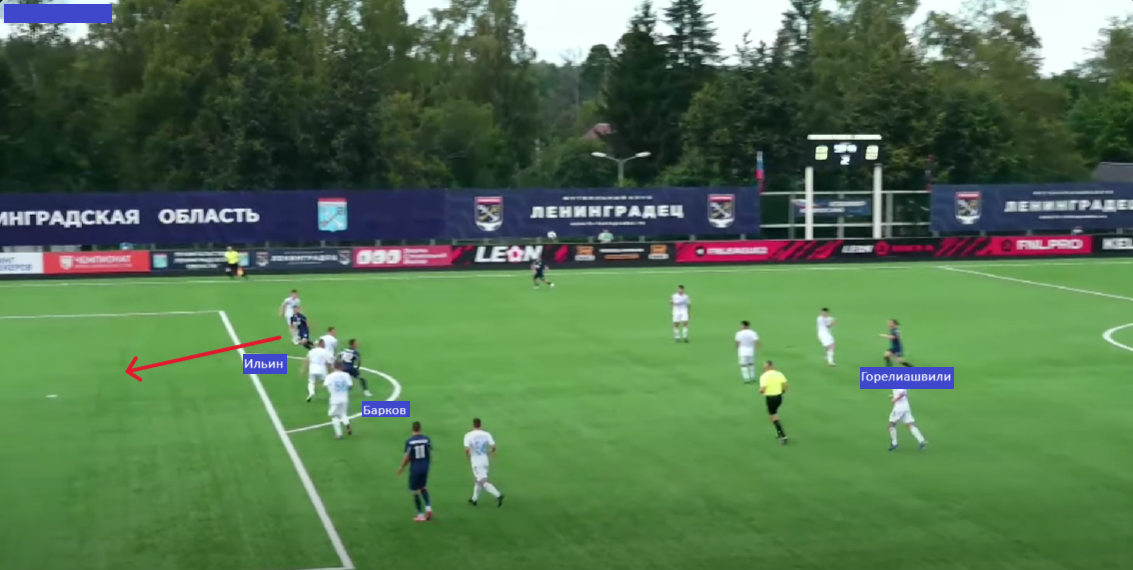 Ну а дальше сработали козыри «Ленинградца». Точнее, козырь. В первой 45-минутке настолько часто шли навесы на Баркова, что его стабильно стали держать по 2-3 игрока «Волгаря». Дмитрия-то закрыли, но в паре с ним же ещё играл Ильин. И вот про него соперники совсем позабыли, в результате чего пришёл первый гол.