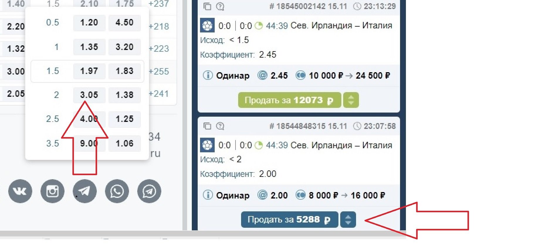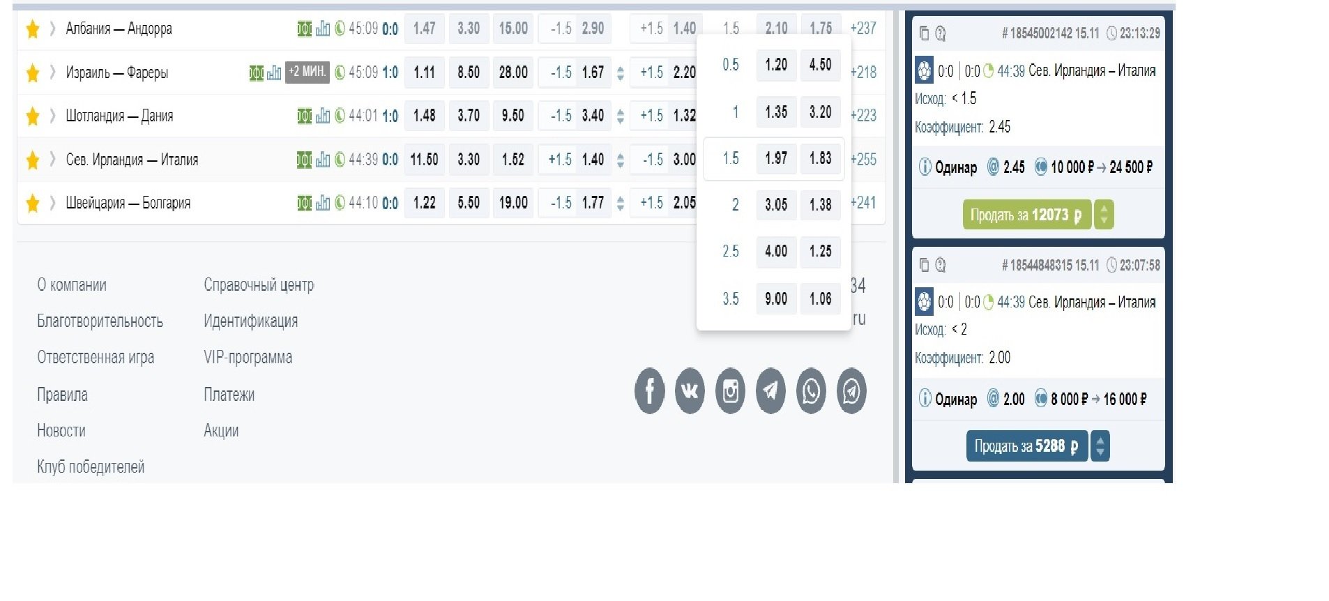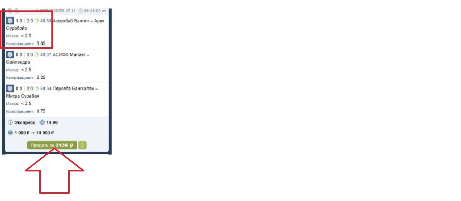 Как это работает? Приведу простейший пример. Вы поставили по линии 1000 рублей на ТБ 2,5 в матче «Ливерпуля» и «Челси» за коэффициент 1.90. К 30-й минуте счёт 1:1, на ещё один гол дают кэф 1.25, но вы опасаетесь, что команды начнут сушить. Тогда можно продать купон дешевле потенциальных 1900, но дороже 1000, чтобы не переживать и гарантированно получить прибыль. Обратный пример: после первого тайма 0:0, шансы на ТБ низкие, кэф 3.50, ставка наверняка проиграет, но жалко терять 1000 — можно её продать и вернуть хотя бы часть.