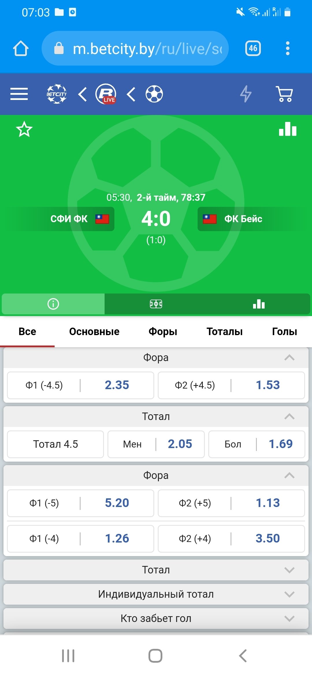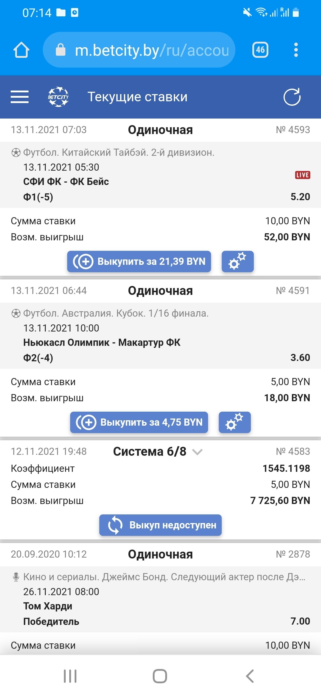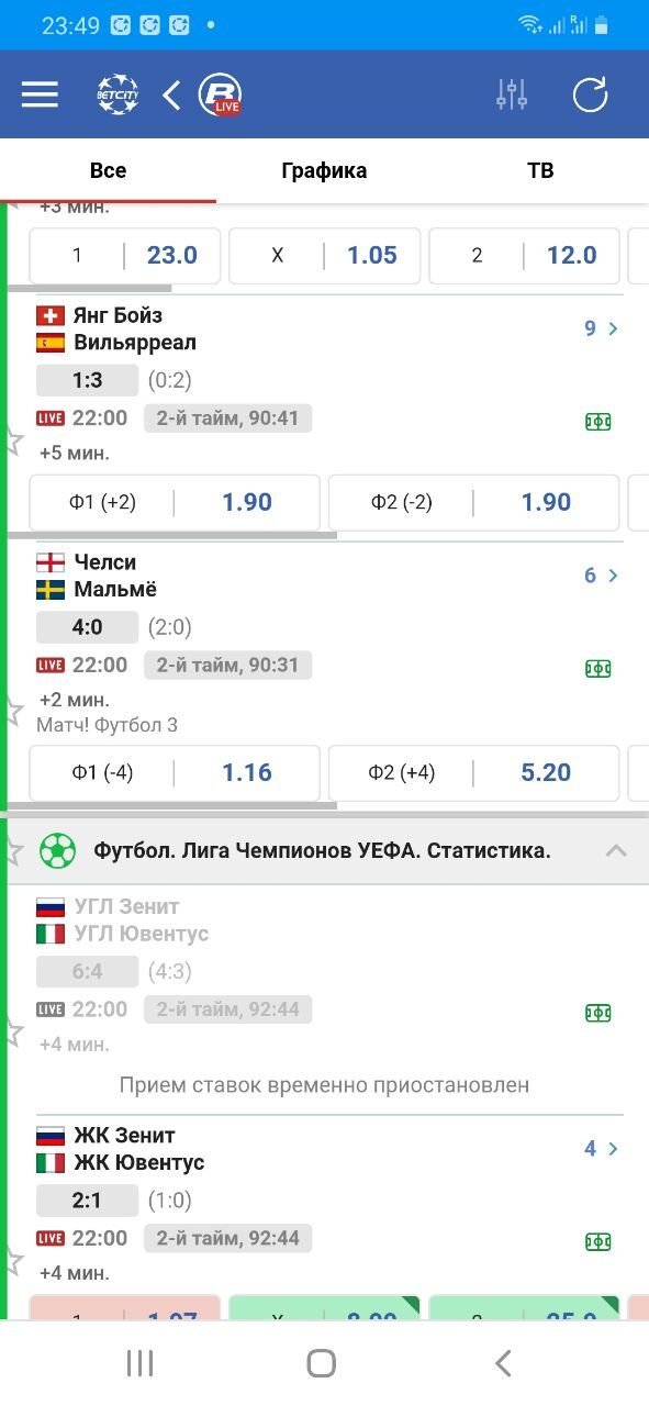 Вторая ситуация — целые минусовые форы явного фаворита в футболе и хоккее. Рассказываю на примере матча Лиги чемпионов между «Челси» и «Мальмё», который состоялся 20 октября. Ставку Ф1 (−4) по линии давали за 4.20, но на 91-й минуте, когда лондонцы вели 4:0 и пари веяло возвратом, кэф в лайве на (−4) был уже всего лишь 1.16.Подводя итог, в целом выкуп ставки — невыгодная функция для игрока. Гораздо лучше поставить вилку на противоположный исход. Но есть два исключения, когда кэшаут выручает, поэтому хорошо, что он есть и в редких случаях может пригодиться.