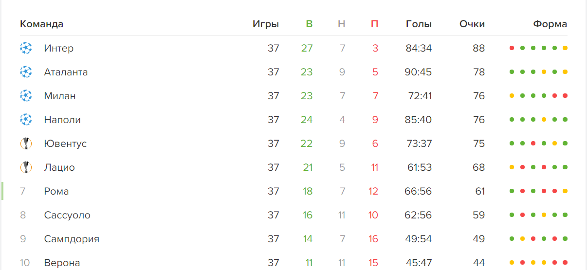 В Италии также уже определился обладатель скудетто, поэтому следим за борьбой за Лигу чемпионов.
