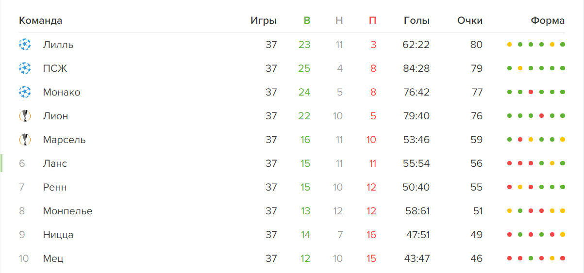 При ничьей ПСЖ может обогнать конкурентов, если «Лилль» проиграет. Тогда парижане будут выше за счёт разницы забитых и пропущенных мячей — перед туром у них +56, а у «Лилля» +40.