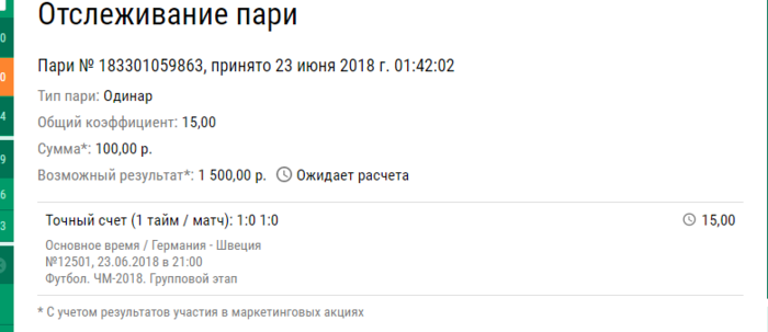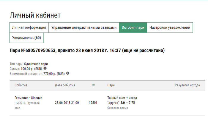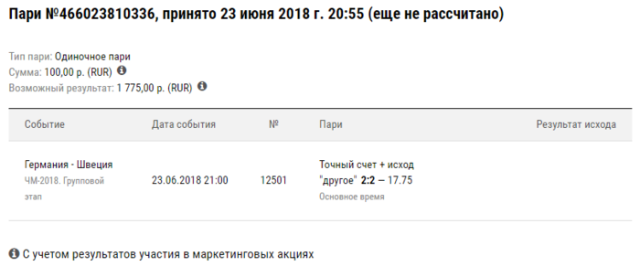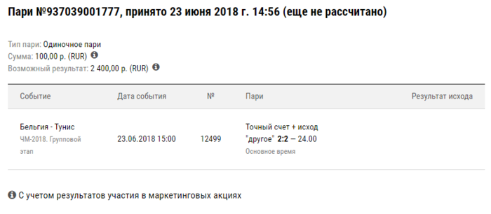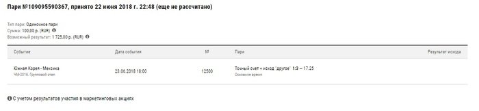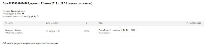 Суть конкурса довольно проста: до начала выбранного матча чемпионата мира участники делают реальную ставку на этот матч и оставляют скриншот этой ставки в комментариях к посту текущего игрового дня. По завершении игрового дня победителем признается участник, сделавший выигрышную ставку с самым высоким коэффициентом.