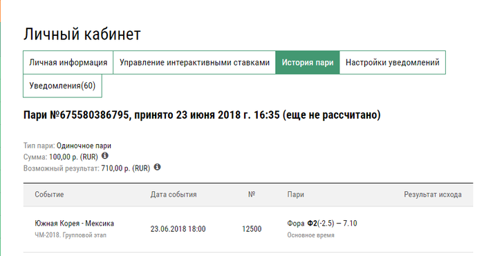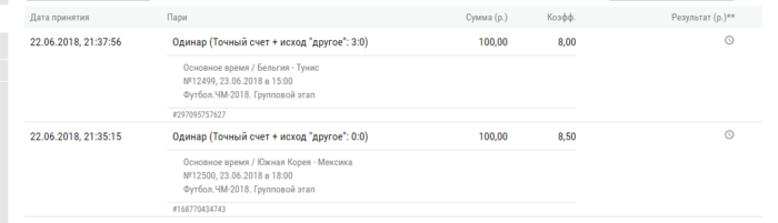 Каждый участник может делать ставку на каждый матч игрового дня, к которому он допущен. При этом на один матч можно сделать не больше одной ставки.
