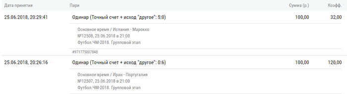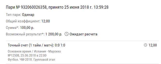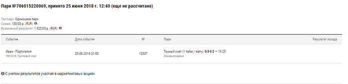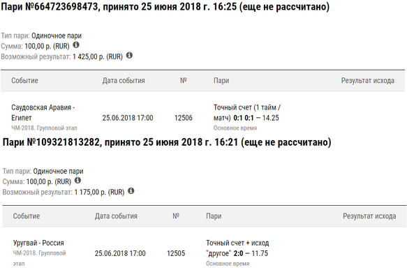 Каждый участник может делать ставку на каждый матч игрового дня, к которому он допущен. При этом на один матч можно сделать не больше одной ставки.