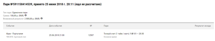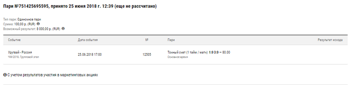 Суть конкурса довольно проста: до начала выбранного матча чемпионата мира участники делают реальную ставку на этот матч и оставляют скриншот этой ставки в комментариях к посту текущего игрового дня. По завершении игрового дня победителем признается участник, сделавший выигрышную ставку с самым высоким коэффициентом.
