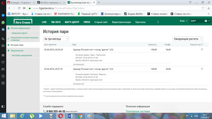 На любой матч игрового дня необходимо сделать реальную ставку на сайте www.ligastavok.ru. Скриншот этой ставки нужно разместить в комментариях к конкурсному посту игрового дня не позднее чем через час после заключения пари. Скриншот может быть принят исключительно до начала матча, на который сделана ставка.