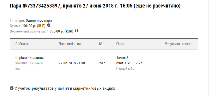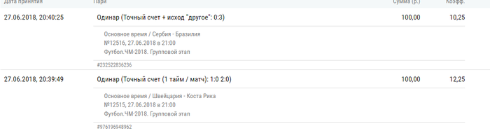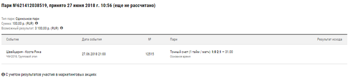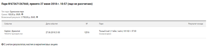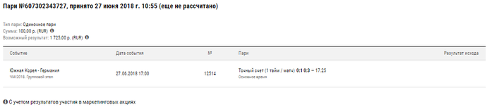 Суть конкурса довольно проста: до начала выбранного матча чемпионата мира участники делают реальную ставку на этот матч и оставляют скриншот этой ставки в комментариях к посту текущего игрового дня. По завершении игрового дня победителем признается участник, сделавший выигрышную ставку с самым высоким коэффициентом.