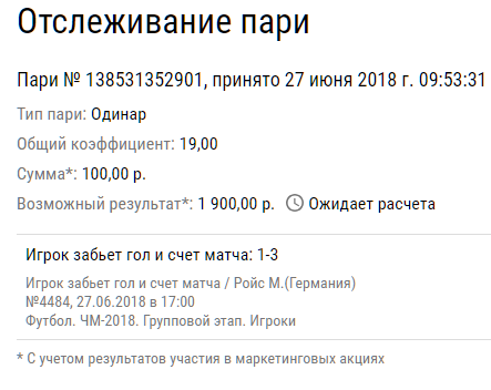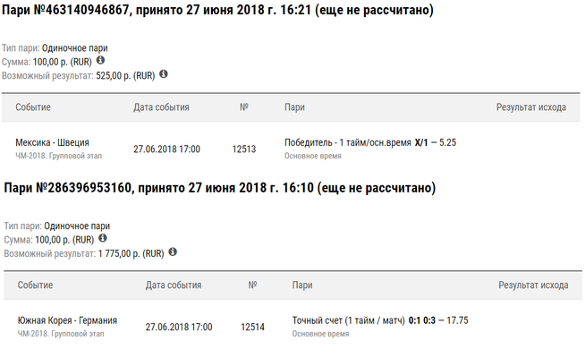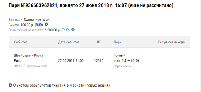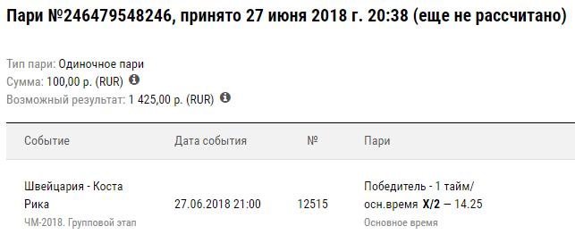 Каждый участник может делать ставку на каждый матч игрового дня, к которому он допущен. При этом на один матч можно сделать не больше одной ставки.