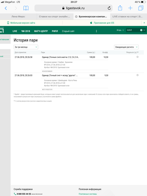 На любой матч игрового дня необходимо сделать реальную ставку на сайте www.ligastavok.ru. Скриншот этой ставки нужно разместить в комментариях к конкурсному посту игрового дня не позднее чем через час после заключения пари. Скриншот может быть принят исключительно до начала матча, на который сделана ставка.