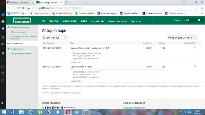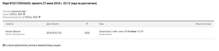 На любой матч игрового дня необходимо сделать реальную ставку на сайте www.ligastavok.ru. Скриншот этой ставки нужно разместить в комментариях к конкурсному посту игрового дня не позднее чем через час после заключения пари. Скриншот может быть принят исключительно до начала матча, на который сделана ставка.