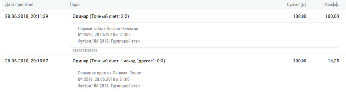 Каждый участник может делать ставку на каждый матч игрового дня, к которому он допущен. При этом на один матч можно сделать не больше одной ставки.