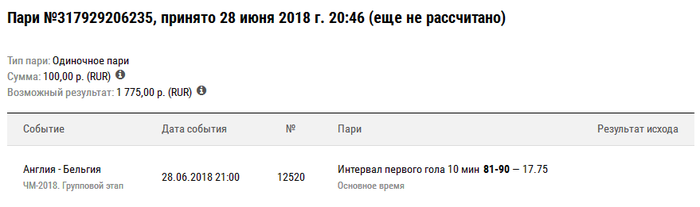 Суть конкурса довольно проста: до начала выбранного матча чемпионата мира участники делают реальную ставку на этот матч и оставляют скриншот этой ставки в комментариях к посту текущего игрового дня. По завершении игрового дня победителем признается участник, сделавший выигрышную ставку с самым высоким коэффициентом.