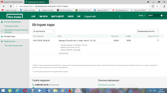 На любой матч игрового дня необходимо сделать реальную ставку на сайте www.ligastavok.ru. Скриншот этой ставки нужно разместить в комментариях к конкурсному посту игрового дня не позднее чем через час после заключения пари. Скриншот может быть принят исключительно до начала матча, на который сделана ставка.