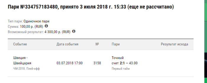 Суть конкурса довольно проста: до начала выбранного матча чемпионата мира участники делают реальную ставку на этот матч и оставляют скриншот этой ставки в комментариях к посту текущего игрового дня. По завершении игрового дня победителем признается участник, сделавший выигрышную ставку с самым высоким коэффициентом.