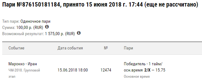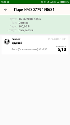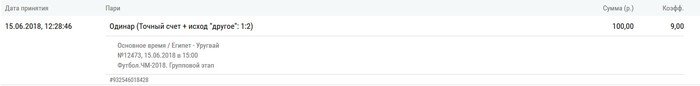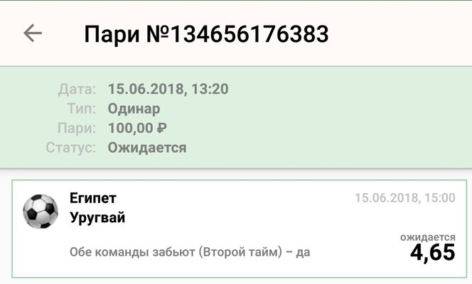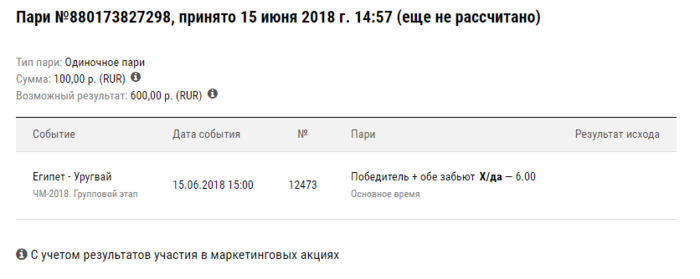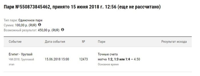 Событие Дата события № Пари Результат исхода Египет - Уругвай