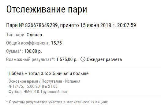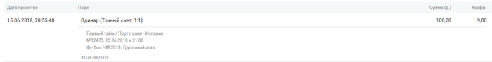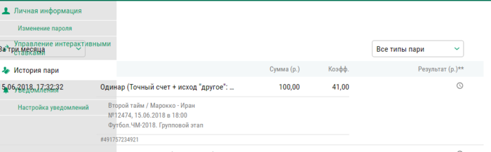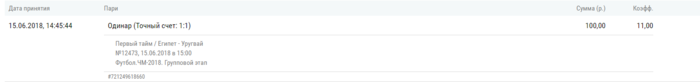 Каждый участник может делать ставку на каждый матч игрового дня, к которому он допущен. При этом на один матч можно сделать не больше одной ставки.