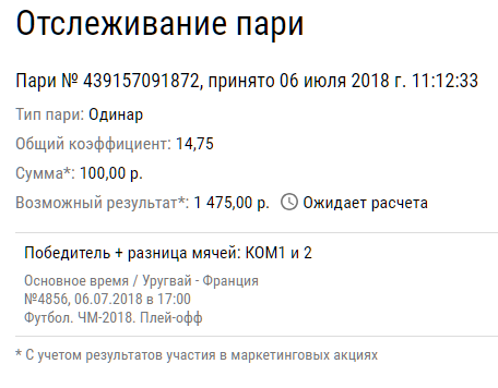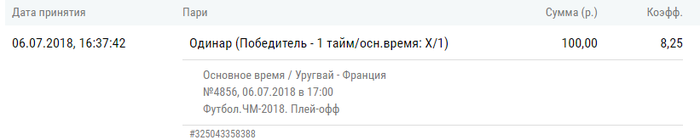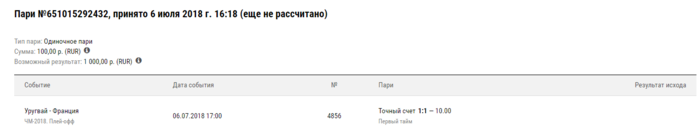 Каждый участник может делать ставку на каждый матч игрового дня, к которому он допущен. При этом на один матч можно сделать не больше одной ставки.