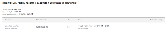 Суть конкурса довольно проста: до начала выбранного матча чемпионата мира участники делают реальную ставку на этот матч и оставляют скриншот этой ставки в комментариях к посту текущего игрового дня. По завершении игрового дня победителем признается участник, сделавший выигрышную ставку с самым высоким коэффициентом.