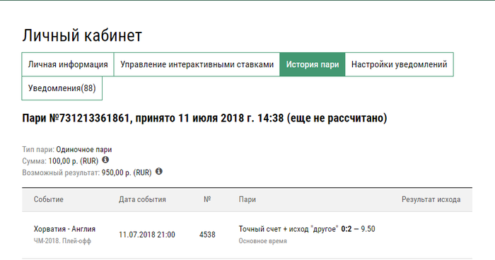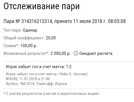 Каждый участник может делать ставку на каждый матч игрового дня, к которому он допущен. При этом на один матч можно сделать не больше одной ставки.