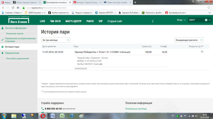 На любой матч игрового дня необходимо сделать реальную ставку на сайте www.ligastavok.ru. Скриншот этой ставки нужно разместить в комментариях к конкурсному посту игрового дня не позднее чем через час после заключения пари. Скриншот может быть принят исключительно до начала матча, на который сделана ставка.