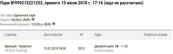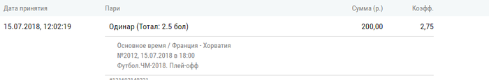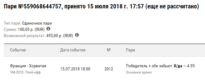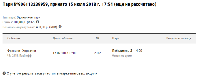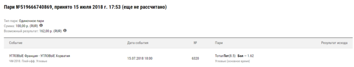 Каждый участник может делать ставку на каждый матч игрового дня, к которому он допущен. При этом на один матч можно сделать не больше одной ставки.