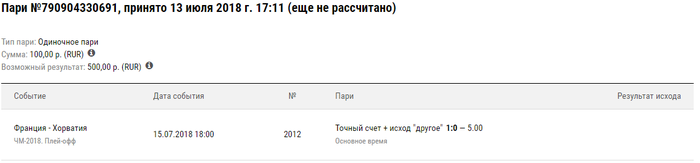 Суть конкурса довольно проста: до начала выбранного матча чемпионата мира участники делают реальную ставку на этот матч и оставляют скриншот этой ставки в комментариях к посту текущего игрового дня. По завершении игрового дня победителем признается участник, сделавший выигрышную ставку с самым высоким коэффициентом.
